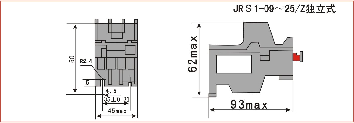 安裝方式:與接觸器插入安裝或獨立安裝。