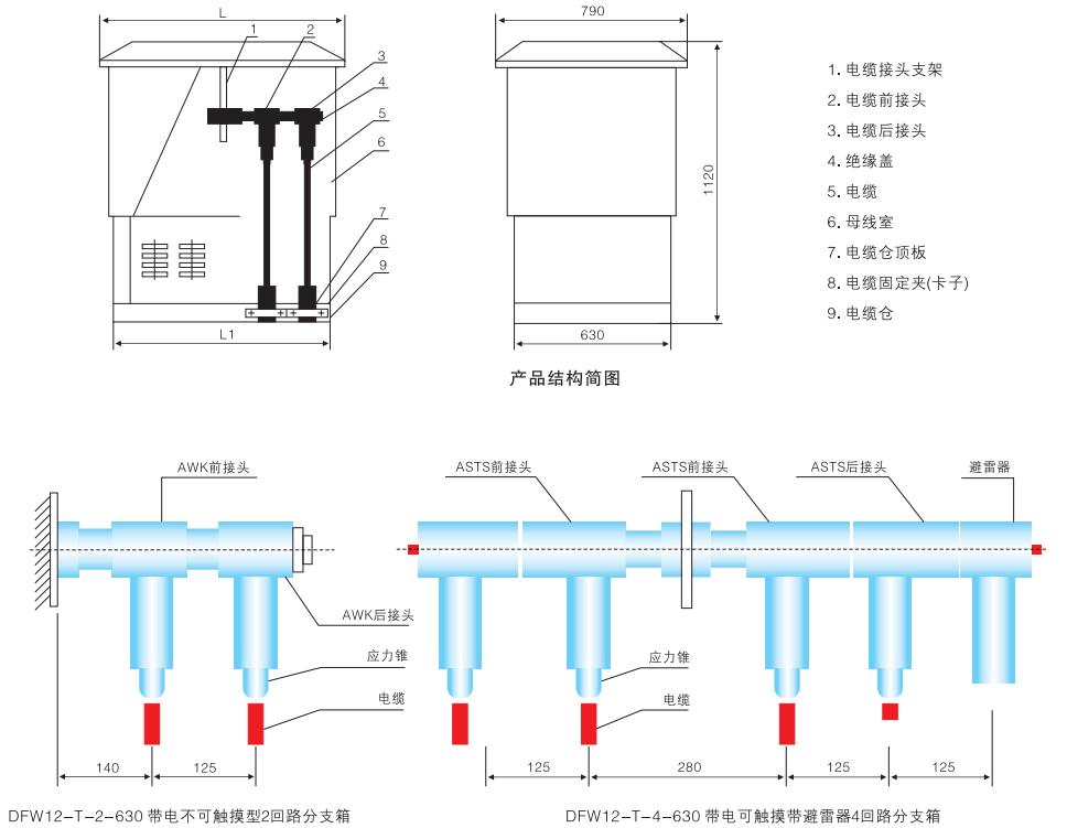 DFW型歐式電纜分支箱近幾年來(lái)廣泛用于電力配網(wǎng)系統(tǒng)中的電纜化工程設(shè)備,它主要特點(diǎn)是雙向開(kāi)門(mén),利用絕緣穿墻套管作為連接母排,具有長(zhǎng)度小,電纜排列清楚,三芯電纜不需大跨度交叉等顯著優(yōu)點(diǎn)。一般采用額定電流630A,螺栓固定連接電纜接頭。