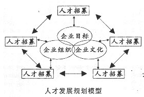 企業(yè)目標(biāo)、企業(yè)組織、企業(yè)文化是人才發(fā)展規(guī)劃的先決條件,這些內(nèi)容在企業(yè)發(fā)展規(guī)劃中需予以明確和規(guī)定。人才發(fā)展規(guī)劃本身由5個(gè)模塊組成,即:人才招募、績效評價(jià)、人才激勵(lì)、人才發(fā)展、人才退出。這5個(gè)模塊構(gòu)成了一個(gè)循環(huán),并與企業(yè)目標(biāo)、企業(yè)組織和企業(yè)文化之間發(fā)生相互作用。該模型的基本原理是Dr.W.Edwards Deming質(zhì)量管理PDCA循環(huán),P (Planning),做事要有計(jì)劃;D(Doing),按照計(jì)劃實(shí)施;C(Checking),檢查執(zhí)行情況;A(ACHEIg),經(jīng)驗(yàn)反饋與改進(jìn)。結(jié)合人力資源發(fā)展與管理工作的內(nèi)容,可以建立如圖所示的基本模型。